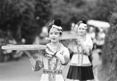 近年来,广西柳州市三江侗族自治县大力发展茶产业,目前全县茶叶种植面积达21.5万亩,干茶年产量1.99万吨,综合年产值86亿元。图为当地侗族姑娘在春茶开采仪式上展示三江早春茶新芽。 新华社发