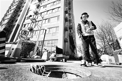 活动现场,两名技术人员用锥桶围出一个方形区域,拉开井盖。“这里就是学院路18号小区DMA(独立计量区)所在地。大的设备是流量计,用来记录居民用水数据;小的是远程传输设备……”顺着市自来水集团管网管理分公司漏失控制科科长佟怿维手指的方向,可以看到井盖下流量计的数值不断跳动,实时显示着小区居民的用水情况。