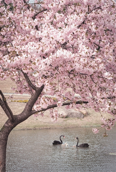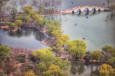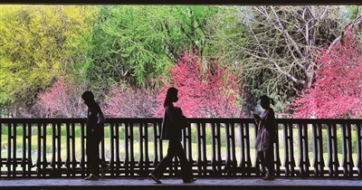 颐和园西堤的山桃花迎春吐蕊,与古建相映成趣,市民们漫步其间,感受着春天的温暖和惬意。这里的景色如诗如画,美不胜收,让人们陶醉在自然的美景中。