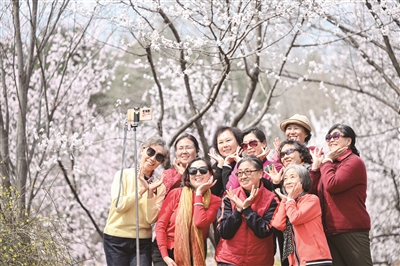 国家植物园第二届桃花观赏季暨世界名花展近日在京开幕,吸引了众多市民和游客前来观赏。在国家植物园(北园)曹雪芹纪念馆西侧的山桃花溪景区,桃花沿溪绽放,艳丽夺目,如同一幅绚丽的画卷。人们在花海中漫步,在石桥上赏花,不少人还拿出相机,留下这美好的瞬间。