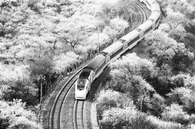 神州大地,春意正浓。目前,居庸关花海栈道已对外开放。沿着栈道拾级而上,看到S2线一辆辆白色列车似游龙般在粉色花海中缓缓穿行,宛如一幅绚丽多彩的画卷,吸引无数游客和摄影爱好者前来赏花、拍照。高峰时期,这里每天可迎来近1万名游客。