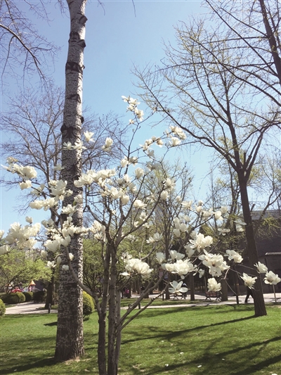 走进园子,春天的脚步近了,小草静悄悄的探出头来,嫩芽正铆足劲钻出枝头。最喜欢春天万里无云的蓝天下那一抹新绿。温暖的春风轻柔地抚摸着我的脸颊,和煦的阳光照在我身上,暖在我心头。万物复苏,给人一种蓄势待发的感动,似乎一切正为春的到来做好了准备:让广阔大地焕然一新,披上绿装,戴上鲜花,树上的小鸟儿有的忙碌着搭窝,有的叽叽喳喳叫起来,在呼唤伙伴;有的和风细雨,好像诉说着美丽的春天……