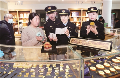清明节假期临近,为保障旅游商品质量并进一步强化知识产权保护工作,连日来,东城区市场监管局开展文创等旅游纪念品和工艺品质量执法检查,保障广大游客消费权益。本报记者 周美玉 摄影报道