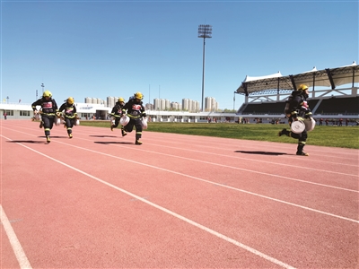 当天,来自朝阳消防救援支队各街乡、政府企业专职队、微型消防站的160余名选手同场竞技,在墙壁消火栓出水、原地着装佩戴空气呼吸器、灭火器灭真火、百米障碍救助、佩戴空气呼吸器400米跑等8个竞赛项目激烈角逐。现场还进行了在北京市职业技能大赛以及自防自救力量比武竞赛中获奖科目的展示。