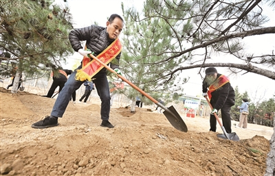 第40个首都义务植树日之际,东城区在中国美术馆东侧城市艺术空间设置主会场,在龙潭铁路沿线东侧的滨香园设置分会场,开展以“同心绘绿 共建共治共享花园东城”为主题的全民义务植树活动。该区劳模、机关干部等社会各界代表200余人带头栽植油松、银杏、海棠等植物近300株。本报记者 边磊 于佳 摄影报道