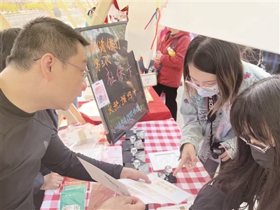 近日,朝阳区安贞邮政支局在元大都城垣遗址公园设立邮政服务专台,提供多款纪念戳、春日花季邮品和赏花打卡服务。连日来,游客们纷纷驻足在邮政展台前,购买邮品、打卡集戳,为公园内绚丽盛景的海棠花溪增添了更多生机。本报记者 边磊 摄影报道