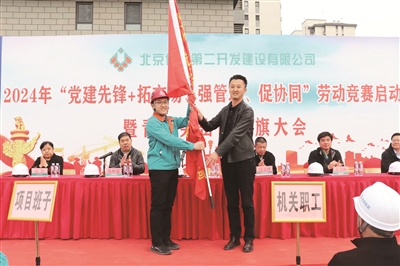 本报讯(记者 崔欣 通讯员 刘英)近日,北京住总第二开发建设有限公司在天津武清区雍丽园项目部举办2024年“党建先锋+拓市场、强管理、促协同”劳动竞赛启动会。会上,该公司领导为2024年新成立的齐岳林青年突击队现场授旗。