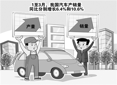 记者10日从中国汽车工业协会获悉,1至3月,我国汽车产销量分别达660.6万辆和672万辆,同比分别增长6.4%和10.6%。(4月10日 新华社)□朱慧卿