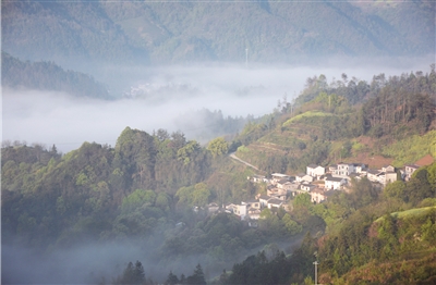 坡山村四面环山,山下是宽阔的昌源河,全年水量丰沛,极易聚成水汽而难以蒸发,这就形成了壮观的云海气象,远远一瞧云蒸霞蔚的古村落,真像仙境一般令人称奇。