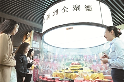 “老字号竟然推出了这么多新花样,我回去后要告诉身边的亲朋好友,让他们有机会也来体验一把。”“这次的活动真实惠,我要把心仪已久的手把件买下来。”……4月19日,在全聚德烤鸭和平门店,一场主题为“劳动创造幸福·首旅精彩生活节”(以下简称“生活节”)的文旅商消费体验活动正式启幕。活动现场,王府井集团、首旅旅行、首旅景区、酒店集团、全聚德集团、东来顺集团、首汽集团、首旅置业、北京饭店公司、华龙公司、古玩城集团、首旅携同、北展集团等13家企业进行了产品展示。首旅集团的工匠们表演的片鸭、面塑雕刻、手切羊肉技艺吸引到场观众驻足观赏,并饶有兴致地聆听介绍、观看展品、品尝美食。