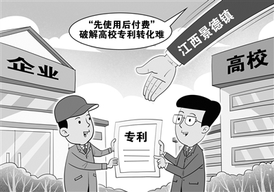 为打通高校专利转移转化的“最后一公里”,江西省景德镇市一边通过职务科技成果赋权改革让高校专利发明人、设计人“我的成果我做主”,一边推动企业对专利“先使用后付费”,有效盘活高校存量专利,引导高校科研活动精准对接市场需求。(4月27日 新华社)□朱慧卿