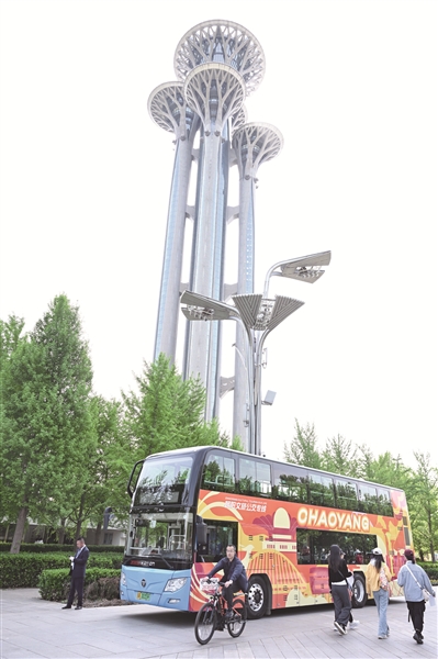 记者了解到,“朝阳文旅公交专线”为市民游客展现朝阳好逛、好吃、好玩的另一面。当乘客乘坐双层巴士途经燕莎码头时,可沿着亮马河行至蓝色港湾,这里位于朝阳区核心地带,是集购物、餐饮、娱乐和文化活动于一体的综合性商业区。一路北上,来到北京奥林匹克塔,便抵达了亚奥商圈的中心,北辰购物中心、环宇荟、新奥购物广场等知名商城聚集于此,在这里不仅能享受到购物的乐趣,还能体验到各种体育活动和文化展演,感受朝阳的现代气息和时尚脉动。