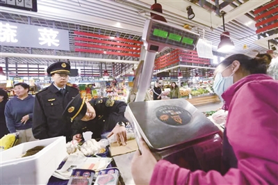 昌平区市场监管局执法人员以重点商圈、商业街区、有形市场等为重点场所,对各经营单位索证索票、购销台账等制度落实情况,商品和服务明码标价情况以及餐饮服务单位是否建立食品安全责任制、是否落实进货查验制度、从业人员有无健康证明、是否使用过期食材等情况进行集中检查。