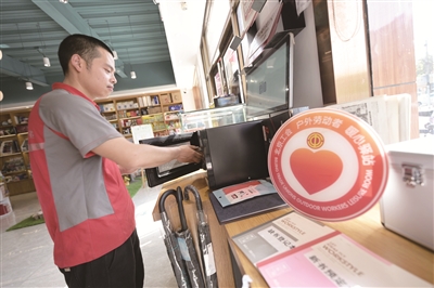 设置在书店公共区域的职工之家和户外劳动者暖心驿站,不仅让进店的人有水喝、能歇脚,而且浓浓的阅读氛围,也让人们沉浸在书香中。对此,新华书店管庄店经理温娜很有感触。“经常来我们这里的户外劳动者,他们进店歇脚时,还会拿起书看一会儿。”顺着她手指的方向,记者看到张贴在墙上的一张张照片,记录着这里为户外劳动者提供服务的场景,也展示着人们热爱阅读的身影。