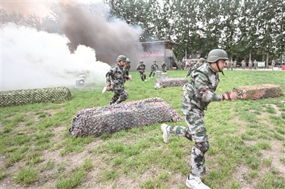 今年5月12日是第16个全国防灾减灾日。图为在朝阳区国防动员训练基地,朝阳区街道系统国防(应急)志愿者防空防灾应急演练汇报活动举办,来自朝阳区24个街道办事处的国防(应急)志愿者代表参与防空防灾应急演练。