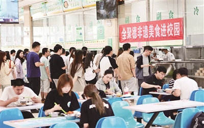 昨天,全聚德非遗美食进校园活动在北京农学院学生第三食堂举行。全聚德(奥运村店)的厨师长带领团队4名厨师为师生制作展示了酱爆鸭肉、焦溜丸子、麻婆豆腐、青椒鸭肠、菠萝咕咾鸭、葱爆鸭心六道传统美食。学生们在品尝特色非遗美食的同时感受到传统文化的魅力和美食带来的愉悦。