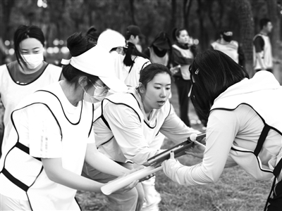 近日,丰台区南苑街道开展南“青”先“丰”青年干部团建活动。活动中,超音速、不倒森林、巧传呼啦圈等各具特色的闯关游戏让青年干部们在轻松欢乐的氛围中培养规则意识、集体意识及团队合作意识,进一步形成党建促团建、青年当先锋、人人讲奉献的浓厚氛围。本报记者 曹立栋 通讯员 史莉 摄影报道