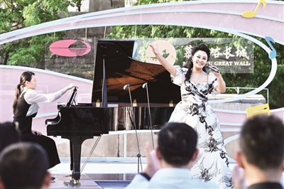 5月21日,2024国家大剧院五月音乐节公益演出走进怀柔区慕田峪长城。在优美的钢琴伴奏下,《草原上升起不落的太阳》《在那遥远的地方》《敕勒歌》《我爱你,中国》等一首首耳熟能详的作品在巍峨壮丽、风景秀美的长城之上唱响。