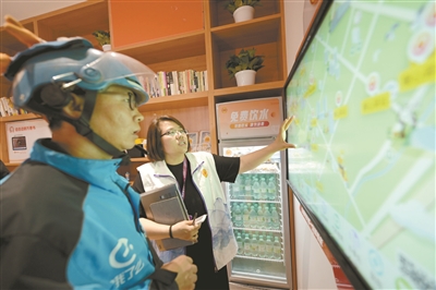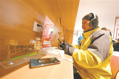 “这里设备齐全,累了能歇脚、渴了能喝水、冷了能取暖、热了能乘凉,最主要的是全天都能使用,对我们来说太方便了。”走进望京骑迹24小时智能化工会驿站,外卖小哥常凯坐在椅子上,利用等单的空闲时间一边为手机充电,一边用驿站提供的耳机聆听有声书。