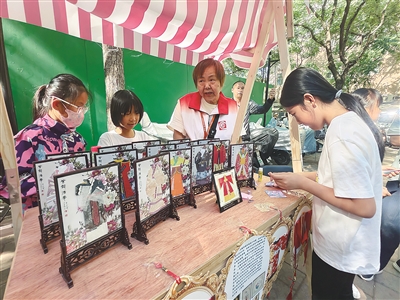 昨天,西城区椿树街道椿树园社区委员会联合北京玩具协会和辖区单位共同举办的“红色领航·椿满园——非遗展示专场”在社区健身广场举行。太平燕、风筝、兔爷、毛猴等12项非遗技艺齐聚展示,闻讯而来的社区居民一边欣赏非遗技艺的精湛,一边与非遗传承人互动,感受传统文化的魅力。本报记者 孙妍 摄影报道