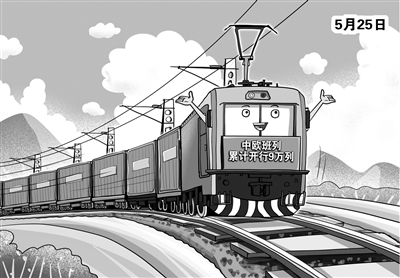 25日上午,随着X8157次中欧班列(西安—马拉舍维奇)从西安国际港站开出,中欧班列累计开行9万列,发送货物超870万标箱。两千多年前,古丝绸之路上驼铃阵阵,商旅不绝于途。今天,中欧班列的汽笛声代替了昔日悠扬的驼铃,唤醒了这条贯通亚欧的贸易“黄金通道”。(5月25日 新华社)□朱慧卿
