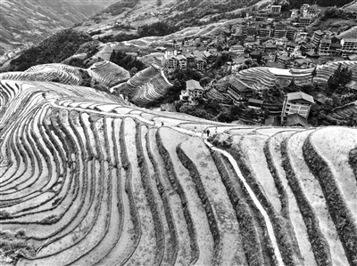 初夏时节,广西龙胜各族自治县龙脊梯田景区内2000多亩梯田生机盎然。图为当地龙脊梯田景色。