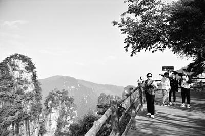 2024年一季度,到湖南省张家界旅游的韩国游客达10.51万人次,比2019年同期增长27.07%,占张家界入境游客总量的40.23%。目前韩国共有首尔、釜山等5个城市直飞张家界,每周航班52架次。图为韩国游客在张家界国家森林公园黄石寨景区游览。 新华社发