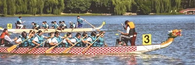 上世纪20世纪40年代末,端午节时北海公园亦曾举办过从北岸五龙亭至南岸琼岛漪澜堂的有奖划船竞赛,观览着数千人,为京城端午日一大盛事。近年来,为弘扬优秀传统文化,推进民族体育项目发展,北京地区的赛龙舟活动趋于繁盛,参与者甚多,规模盛大,其中又以副中心地区的大运河赛龙舟活动最为引人注目。