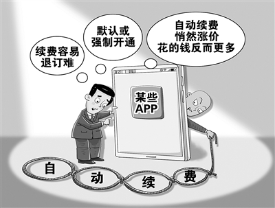 移动互联网时代,手机APP成为人们生活中必不可少的工具。然而,一些APP自动续费屡遭质疑:从续费容易退订难,到默认或强制开通,再到自动续费悄然涨价、花的钱反而更多……缘何问题反复出现、屡禁不止?(5月29日 新华社)