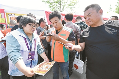 现场扫码入会,体验各级工会精心准备的服务项目,免费领取爱心礼包和职工家庭防癌抗癌保障卡……由北京市总工会、中华全国总工会滴滴蹲点组主办,北京市交通运输工会、通州区总工会、滴滴集团(北京)、北京市物流商会承办的北京市滴滴网约车、货车司机集中入会仪式日前在通州区顺泰物流园举行。150名滴滴等网约车、货车司机在属地工会工作人员帮助下加入工会“大家庭”。