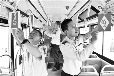 车厢栏杆上挂满了写有“金榜题名”“一举夺魁” “前程似锦” 的祝愿卡……近日,装扮一新的北京公交集团客五分公司985路“高考祝福”主题车厢正式上路,为考生们加油。