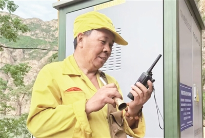 “列车接近作业地点,防护员收到,作业人员注意避车!”丰沙线26#隧道棚洞工程现场,防护员袁建强正一边吹着喇叭、提醒工友们注意避车,一边紧盯着线路来车方向。这一天,是袁建强在岗的最后一天,他仍像往常一样,精神矍铄,防护时打起十二分精神,时刻监听列车运行情况。长年累月的防护作业,已让他练就了一双“千里眼”和一对“顺风耳”,在防护工作中能够准确迅速复诵传递列车运行信息和调度命令,也能够准确瞭望远方列车,只要是他防护,工友们都非常放心。
