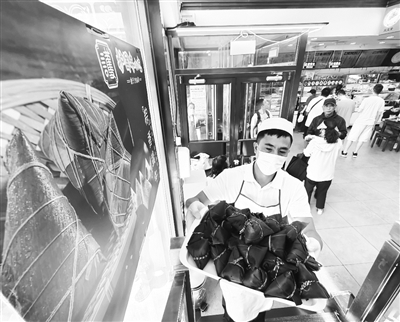 随着端午节临近,粽子销售进入旺季。记者昨天从护国寺小吃总店了解到,今年除了销售小枣、豆沙、蜜枣等传统口味的粽子,还推出了咸蛋黄牛肉粽,受到年轻人的喜爱。此外,西来顺、峨嵋酒家、老西安饭庄、聚德华天等老字号都推出各式口味粽子,满足广大市民的需求。本报记者 孙妍 摄影报道