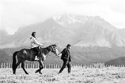 进入六月,位于新疆塔城地区沙湾市的鹿角湾景区迎来了最美时节。遥望冰封雪岭,近看碧草繁花,天高地阔的美丽风光,令人仿佛置身童话世界。图为游客在景区体验骑马。 新华社发