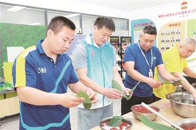 本报讯 (记者 刘欣欣)昨天,朝阳区安贞街道史超齐劳模工作室举办“我们的节日”端午节包粽子主题活动。受邀前来的外卖和快递小哥们与史超奇劳模工作室的志愿者们共同包粽子、话家常,并将新鲜出锅的粽子送到坚守岗位的一线职工手中。