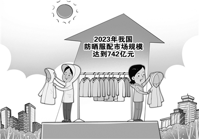 炎炎夏季,防晒衣是很多人的心头好。云朵凉感、原纱防晒等一众概念走俏市场;从头到脚,从连帽、斗篷等款式到多巴胺配色,防晒穿搭成为夏日潮流。防晒衣火了,这个产业有多大?艾瑞咨询联合相关品牌发布的数据显示,2023年我国防晒服配市场规模达到742亿元,预计2026年将达958亿元,防晒衣占比将超50%。(6月11日 新华社)□朱慧卿