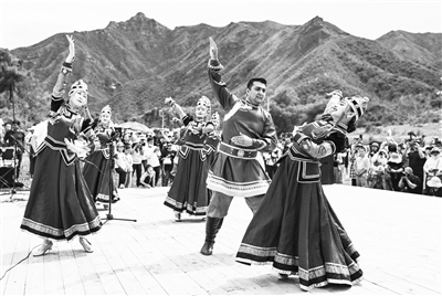 近日,乌鲁木齐市水磨沟区在水墨天山国家登山健身步道开启“夏牧场·游牧文化旅游节”活动,通过游牧文化文创产品展示、特色歌舞表演和体育活动展演,让游客领略游牧文化。图为演员表演舞蹈《白马》。新华社发