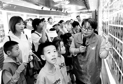 在月亮湖红色教育基地,文明实践志愿服务讲解员引导家长和孩子们参观百年党史照片,并仔细聆听怀柔区第一名共产党员刘玉林领导学运、工运、农运的主要事迹。一位四年级男生感慨地说:“刘玉林真是一位了不起的大英雄,9岁就参加了革命活动,我现在10岁了,干什么事还都需要爸爸妈妈陪伴。我要好好学习,长大后也要成为像刘玉林一样的人,为人民谋幸福,为祖国做贡献。”