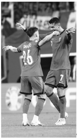 第87分钟,C罗高高跃起头球攻门,球击中门框弹出,若塔补射入网,但裁判示意C罗越位在先,进球无效。补时阶段,赫拉纳克解围失误,再次送礼,孔塞桑近距离打门得手,葡萄牙队2:1逆转绝杀对手。