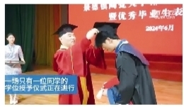 近日,江西景德镇陶瓷大学举行了一场只有一位同学的学位授予仪式。原来,今年5月下旬,曾登记加入中华骨髓库的学生谢志龙获知一位身患血液病的患者与他配型成功。尽管有严重的晕血症,但得知能挽救他人生命,在得到家人的理解和支持后,他坚定地表示愿意捐献。于是,他戴着眼罩完成了捐献,而错过了学校举行的学位授予仪式。得知原因后,学校专门为谢志龙举办了学位授予仪式。