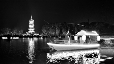 “月华连昼色,灯影杂星光。”夜色下的妫水湖神秘而温柔,湖心岛与宝塔点缀在湖面,乘船夜游,岛上小憩,塔下观舞,摇动的芦苇增添了浪漫的气息。湖面的波光、宝塔的灯光和游船的灯火相辅相成,与湖畔的夜色构成了一幅美丽的夜游画卷。