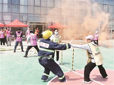 近日,朝阳城市发展集团工会和集团安全维稳部联合组织开展2024年安全技能竞赛,来自该集团各部门、各单位的百余名选手组成8支队伍参加比赛。此次竞赛包含灭火器接力赛、水带保龄球、拥挤踩踏逃生、消防障碍赛、精准定投、包扎等6个项目,以切实提升职工自救互救和实战应急能力水平,在企业内部上下营造安全生产氛围。
