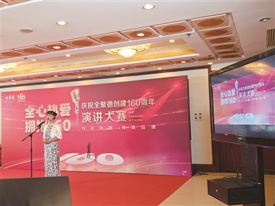 近日,在全聚德集团成立160周年之际,该集团以“全心热爱、拥抱160”为主题的职工演讲大赛决赛在全聚德集团总部拉开帷幕。此次演讲大赛开赛以来,该集团海内外各门店、各企业、集团总部各支部、工会积极参与,经过初赛、复赛选拔,最终15名选手进入决赛。决赛现场,职工们围绕“热爱”主题展开演讲,分享着自己对全聚德品牌的理解,讲述着自身成长与全聚德之间的故事。