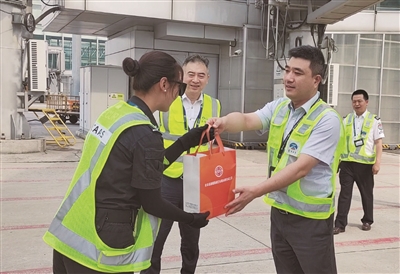 近日,首都机场安保公司工会开展“夏送清凉”慰问活动。活动中,工会工作人员为在监护、机坪卡口等室外作业岗上的职工送去电解质水、防晒霜、冰贴、酸梅汤、小电风扇及十滴水等慰问品,同时叮嘱职工要注意劳逸结合,加强对防暑降温、防雷击知识的学习,确保平安健康度夏。