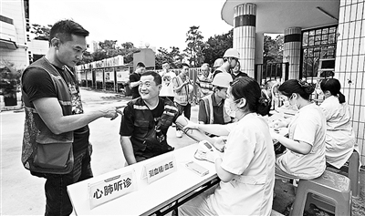 为提高一线建设者自救互救能力,近日,来自广东深圳万丰医院的医护人员前往深圳市宝安区某项目建设工地开展义诊活动,为300余名工友提供血压血糖测量、心肺听诊、视力筛查等免费诊疗服务,并对相关疾病及并发症进行详细讲解。同时,活动现场还有急救培训讲师采用理论讲解、实操训练和学员互动相结合的方式,为工友们带来一场生动的“体验式”急诊急救培训。(6月28日《工人日报》)