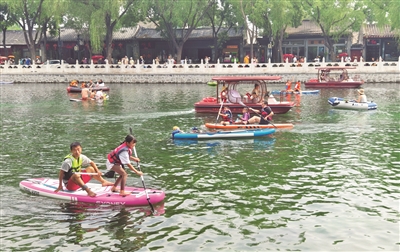 今夏,桨板运动在年轻人中走红。什刹海、亮马河、昆玉河、通惠河等公开水域,五颜六色的桨板成为了点缀夏天的一抹“亮色”,吸引了一大批年轻人前来“乘风破浪”,大家以各自的方式享受着桨板运动带来的全新体验。