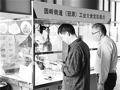 7月3日中午12点,在深圳福田八卦岭工业区工作的秦先生步行不到200米来到园岭(冠源)工会大食堂,看着荤素搭配的十余种菜品,顿觉食欲大开。他端着餐盘,把红烧肉、酱油鸡、韭菜炒蛋、娃娃菜等装入盘中,又添了一碗米饭,结账付了20余元。“价格算过得去,更重要的是方便,工业区内餐馆不多,走远了,又热又累,还会影响午休。”(7月15日《南方工报》)