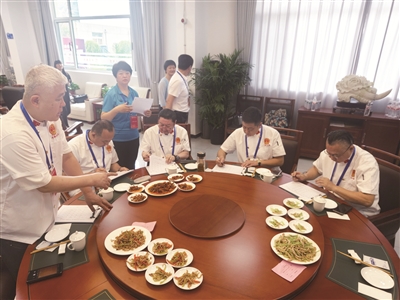 一盘菜被分成几小份,快速端到5位裁判面前。“颜色看起来还可以,香味也足……但有点偏咸了。”裁判们认真地对每一道菜进行打分。