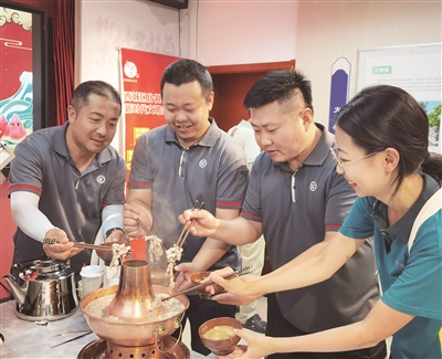 7月17日,西城区什刹海街道举办第二届小哥美食节,辖区老字号美食企业为快递、外卖、环保、物业等户外工作者提供酸梅汤等清凉饮料以及数十种特色小吃,还举办集体生日会、免费体检、互动游戏等活动,为户外工作者带来盛夏的关爱。
