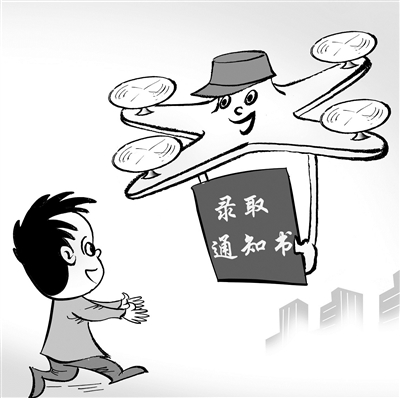 7月15日,广东省高考首批录取通知书正式发放。上午11时,搭载着4张录取通知书的无人机,从华南理工大学起飞,30分钟后,抵达广州市黄埔区某小区。4张录取通知书成功发放到考生手上,标志着全国首批无人机全程配送高考录取通知书取得成功。(7月16日《科技日报》)